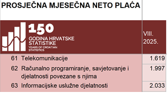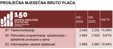 Prosječna bruto plaća u telekom i IT djelatnosti: