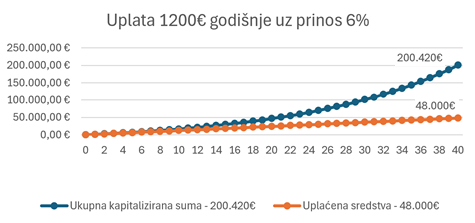 Prinos od 2% više nosi značajnu razliku u visini ukupnih ušteđenih sredstava u dugogodišnjem razdoblju.